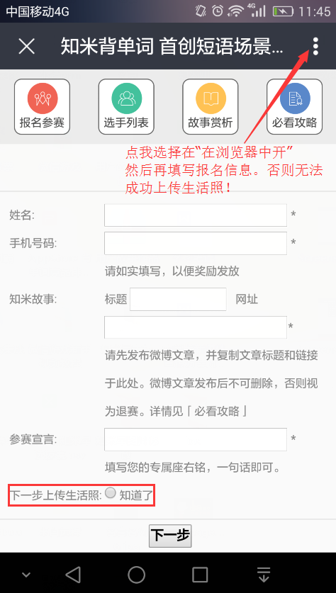 2.在浏览器中打开报名后台再填写报名信息,如右图