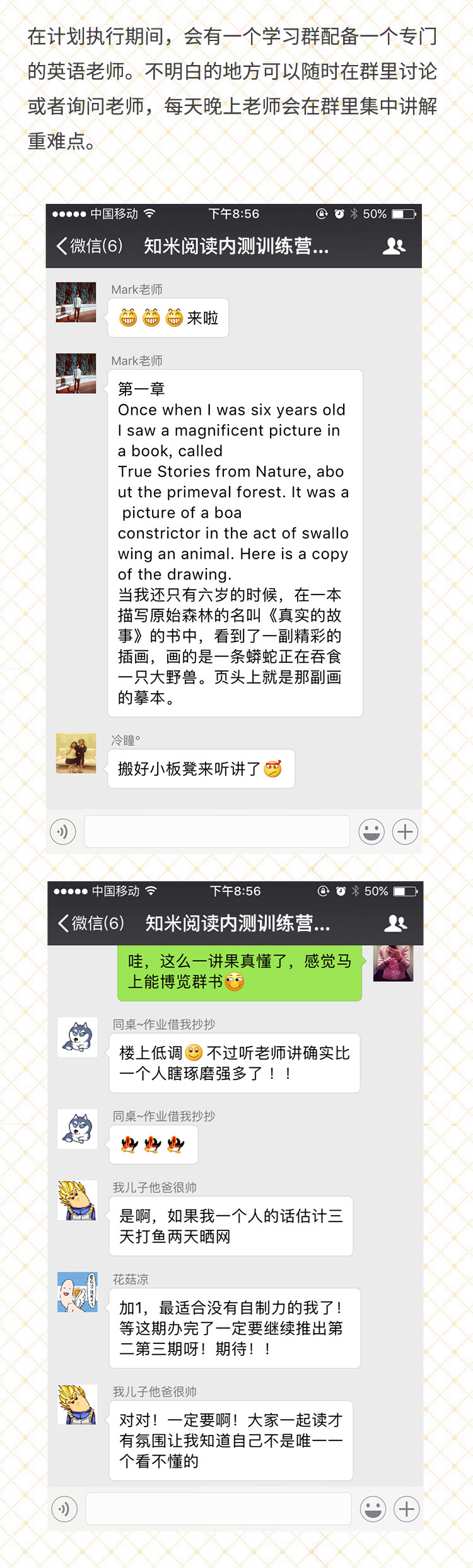 3、微信群学习。报名成员除了自学之外,还可以加入专属微信群,组队对抗惰性,还有老师讲解。